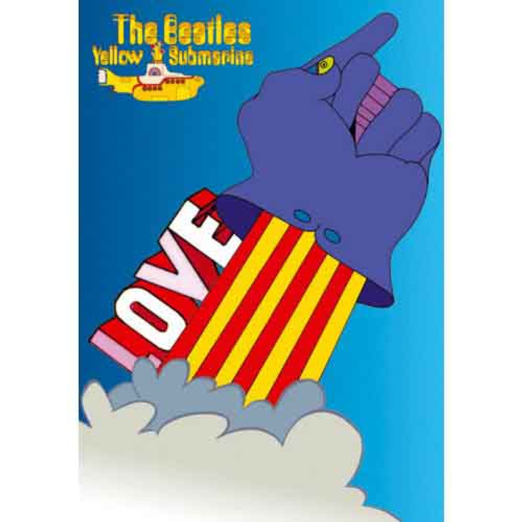 Official licensed The Beatles Postcard featuring the 'Yellow Submarine Love Glove' design motif.